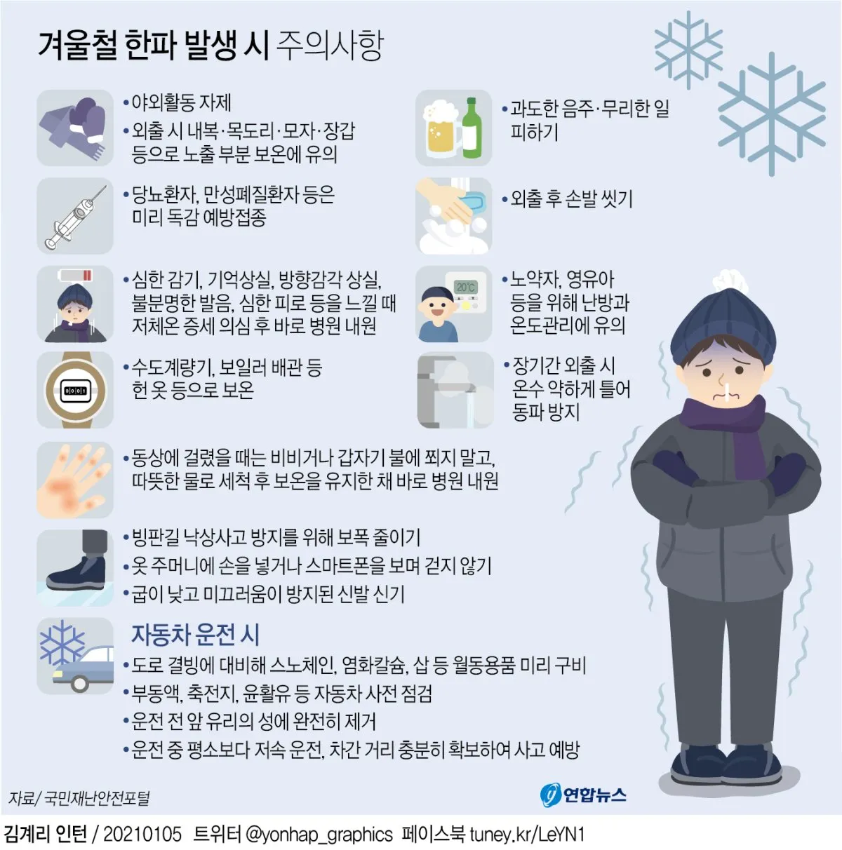 - 겨울 저체온증: 실내 온도가 너무 낮으면 저체온증으로 인한 위험 증가